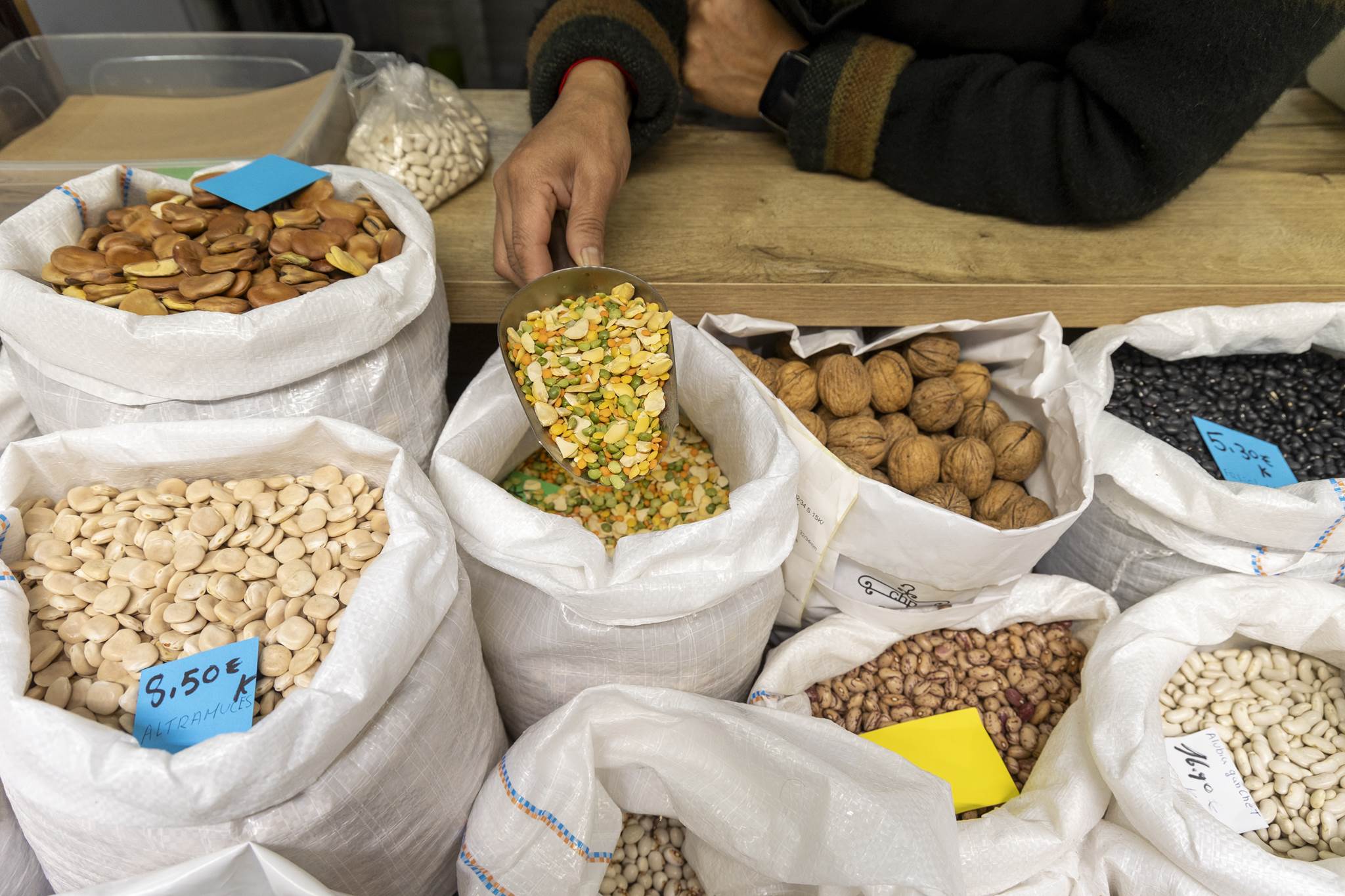 Blanca, El Racó de l’Oliva abrió sus puertas en 2013 como una parada de primera generación en el Mercat Central de Benicarló. Desde sus inicios, se ha especializado en la venta de productos a granel, salazones y encurtidos, apostando por una selección cuidada de alimentos tradicionales. Su propuesta combina la esencia de la cocina mediterránea con un trato cercano, convirtiéndose en un punto de referencia para quienes buscan productos de siempre y asesoramiento personalizado.