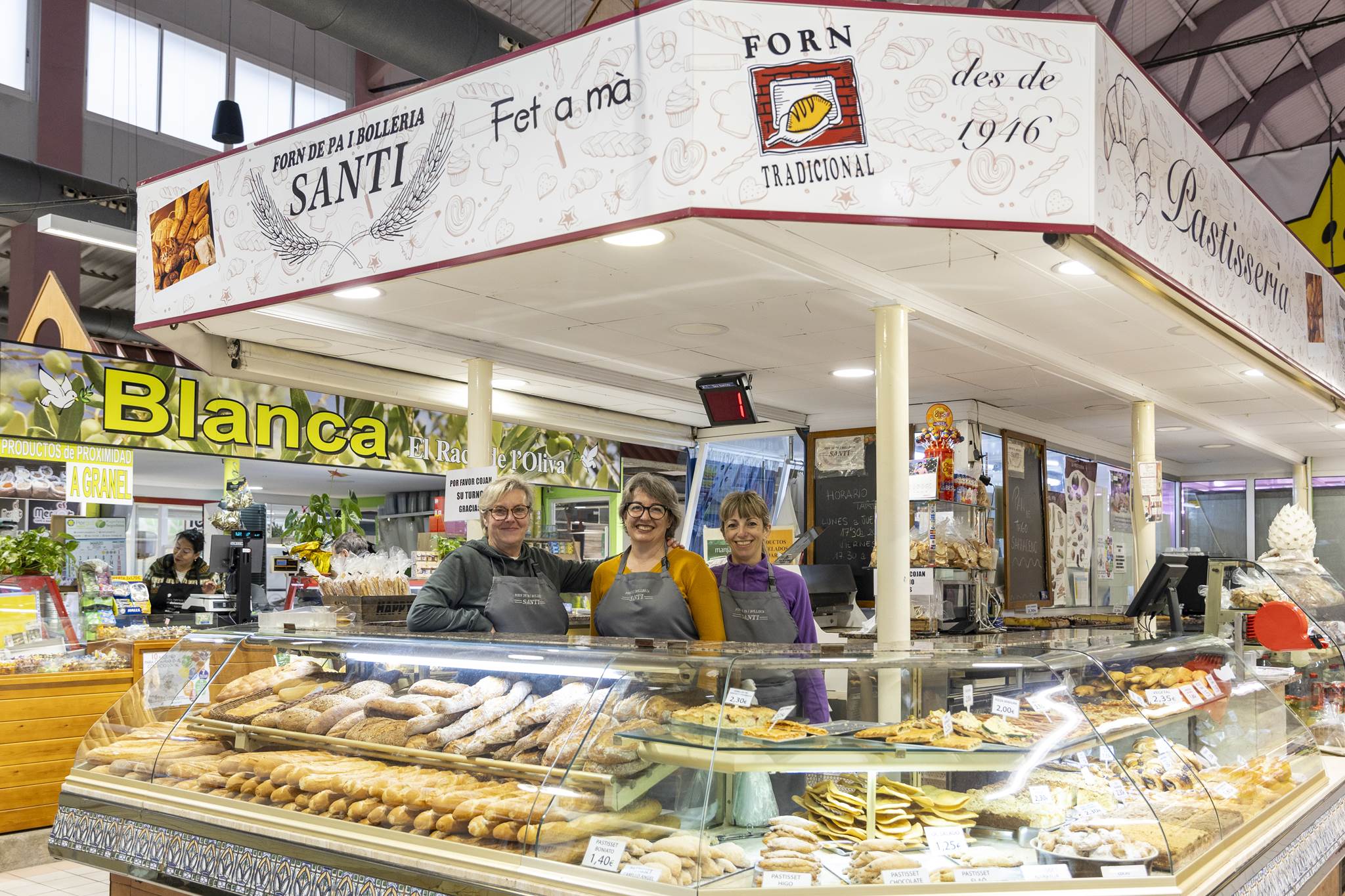Tradición panadera desde 1947, presente en el mercado con su segunda generación. Destacan por su elaboración artesanal de panes especiales, bollería y típicas cocas locales.